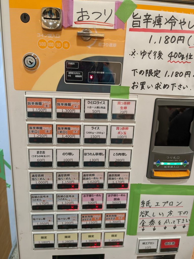 券売機は左側にあります。現金のみ。