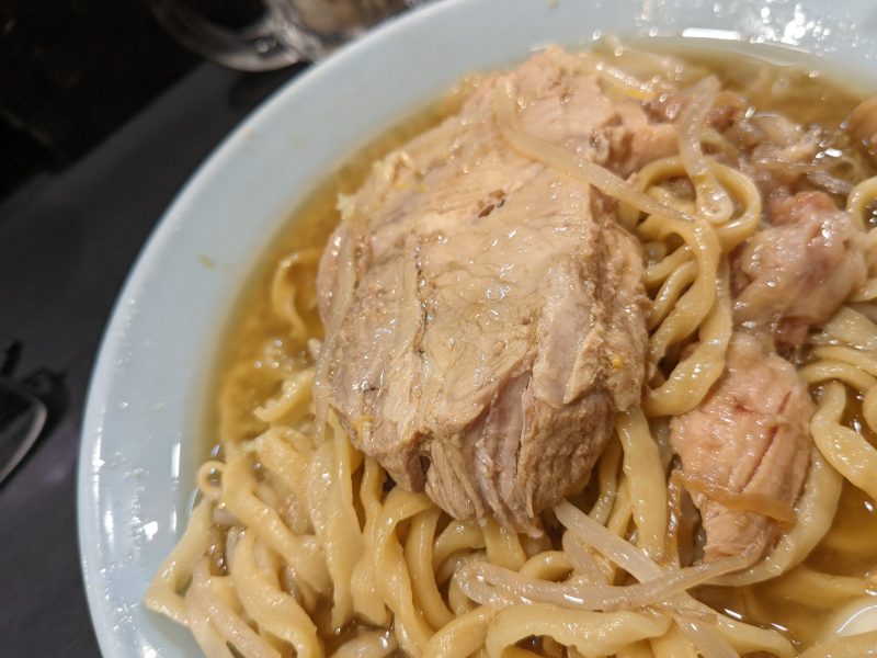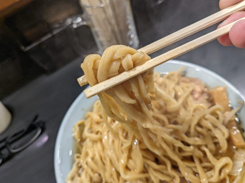 麺はワシッとしていて美味しい。少な目でもめちゃくちゃ量あります。