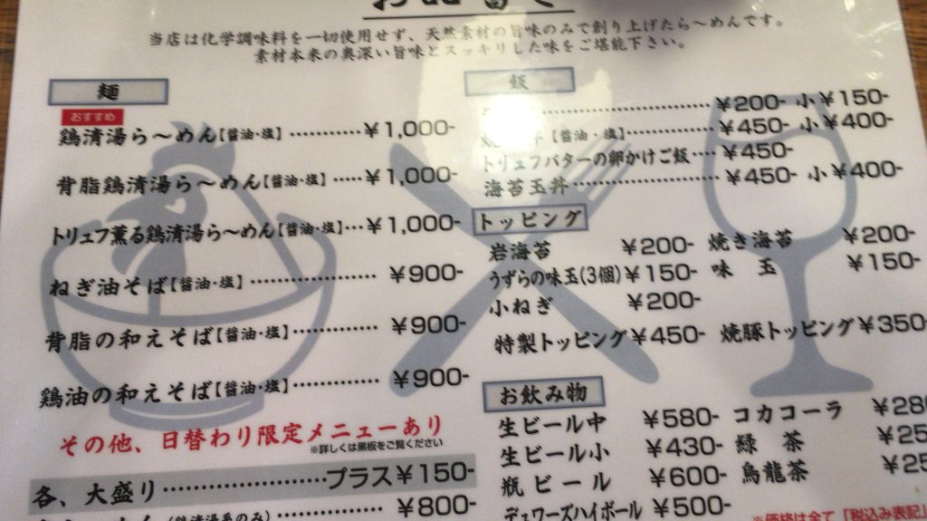 鶏清湯醤油らーめん大盛を注文。ランチタイムは大盛り無料っぽい。