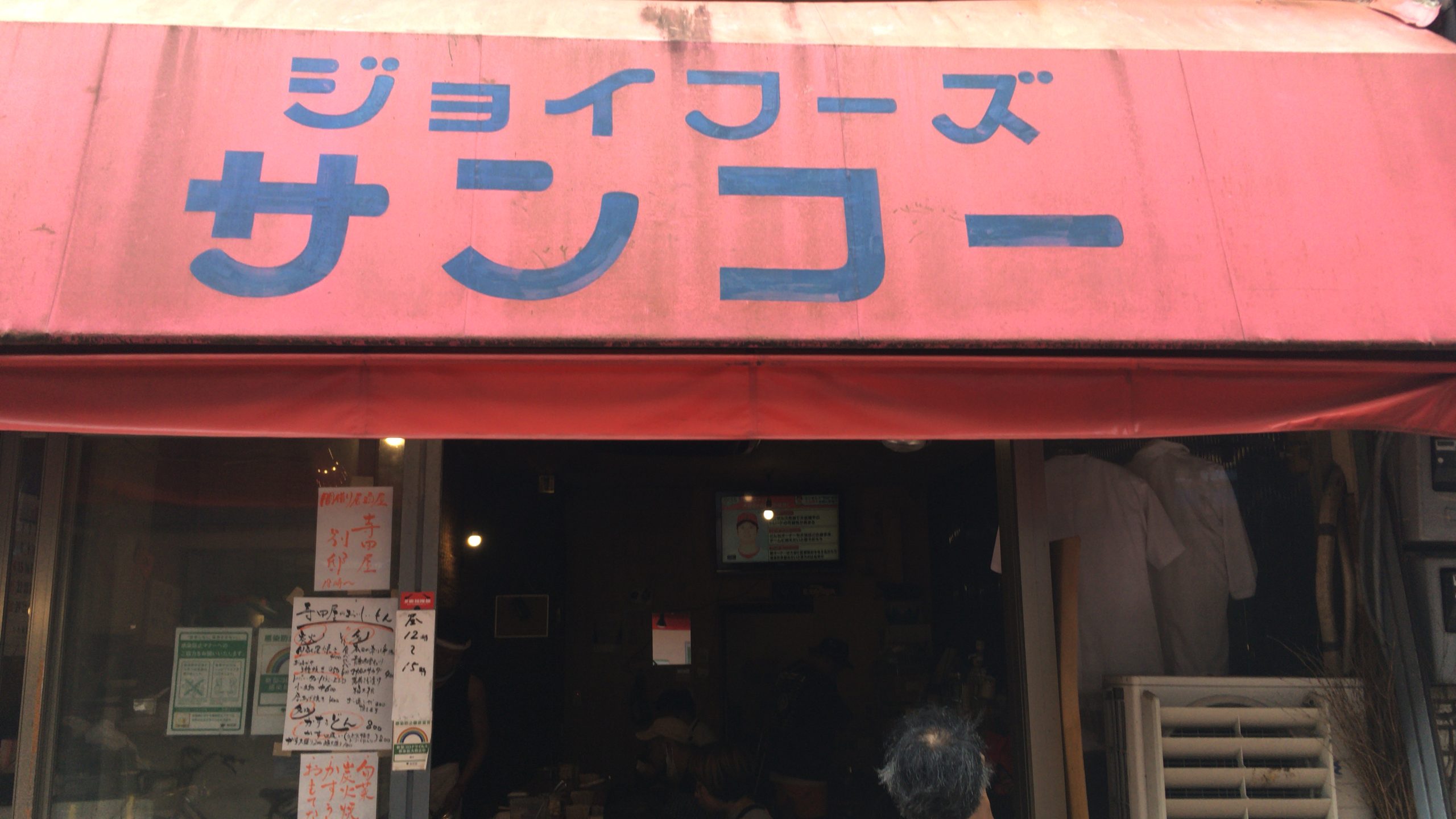 店内開けっ放しで扇風機回ってます。凍ったおしぼりが気持ちいい。