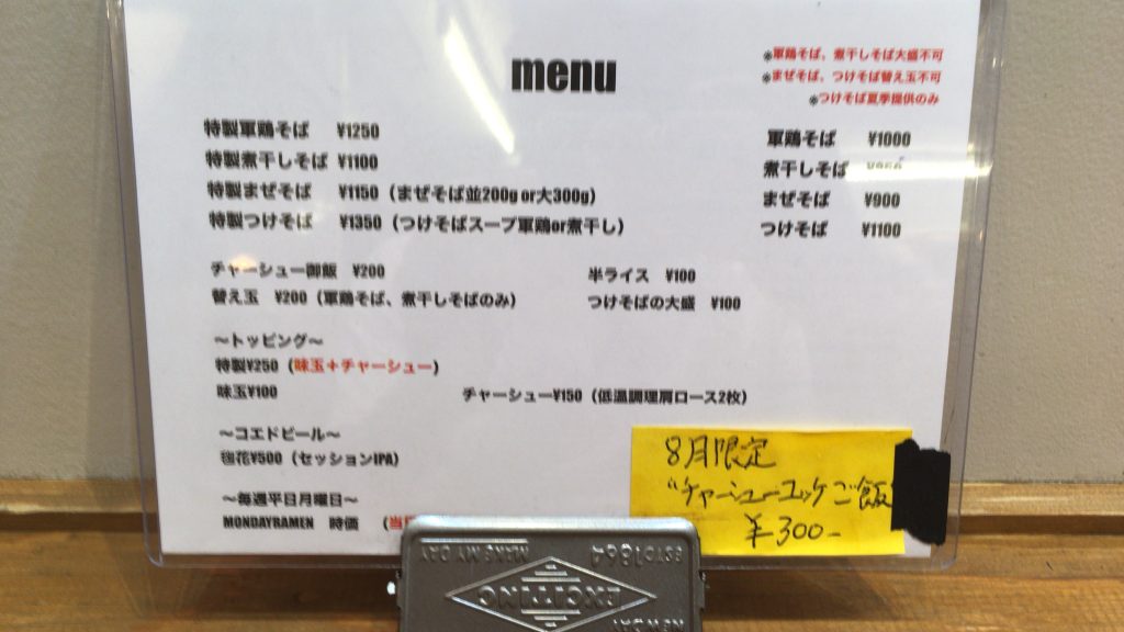 ここは券売機がなく、注文して食べ終わったら会計です。