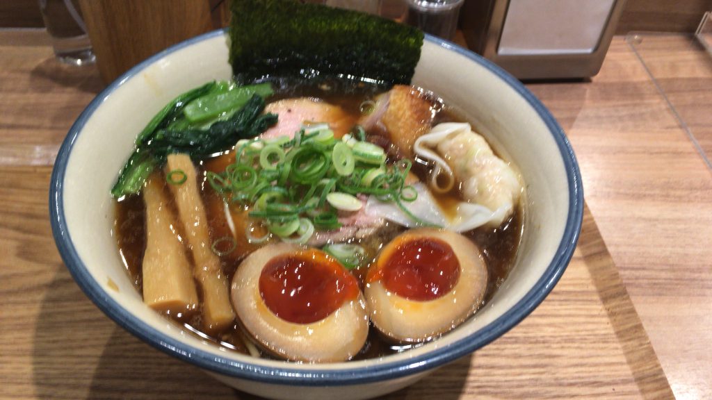ワンタンは生姜が効いてて美味い、しかもでかい。